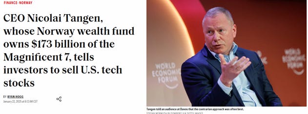 Last month in January 2025, the CEO of the Norwegian Oil Fund said,