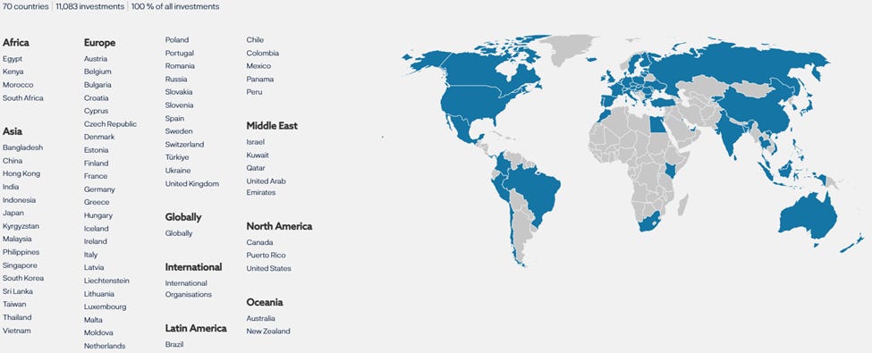 Here is the complete list of all 8,659 equity investments in 63 countries as a PDF file and as an Excel file:
