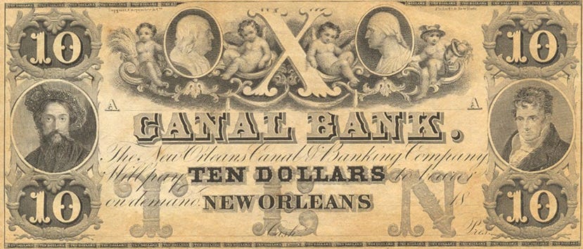 Louisiana, New Orleans, Canal Bank, $10 note, 1840s
